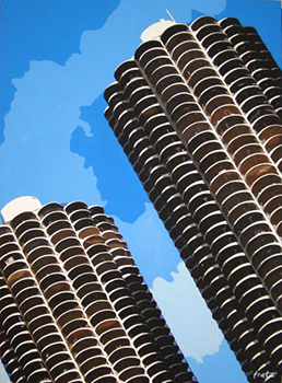 Painting: Marina City, Chicago, 150 x 200, acrylic on canvas, hanging without frame, canvas painting, art